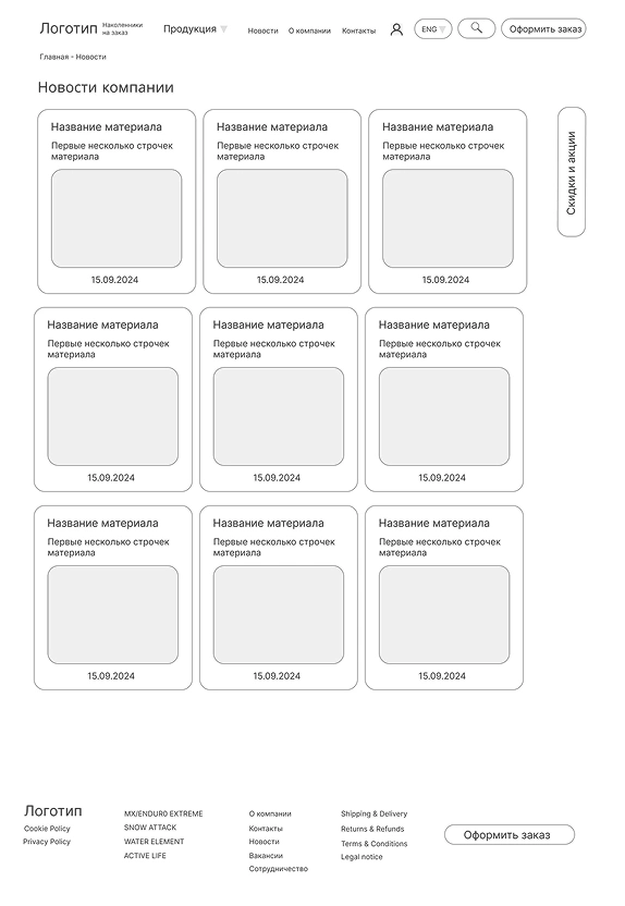 линейная со всеми ключевыми разделами (УТП, каталог продукции, FAQ, контактная форма и новости). Разделение контента по воронке AIDA (классика)