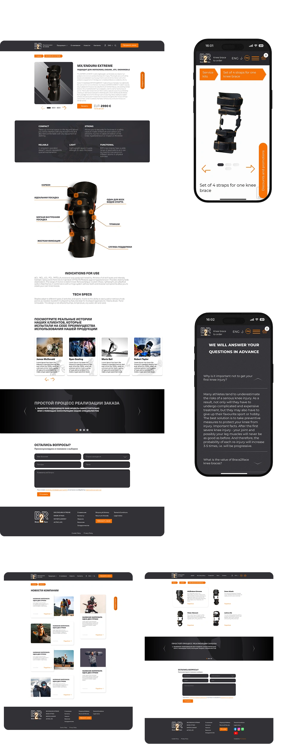 Сильный визуальный стиль, “спортивный” эмоциональный фон. Активное использование больших изображений продукта. Хорошая адаптация под мобильные устройства. Качественная подача информации о технологиях
